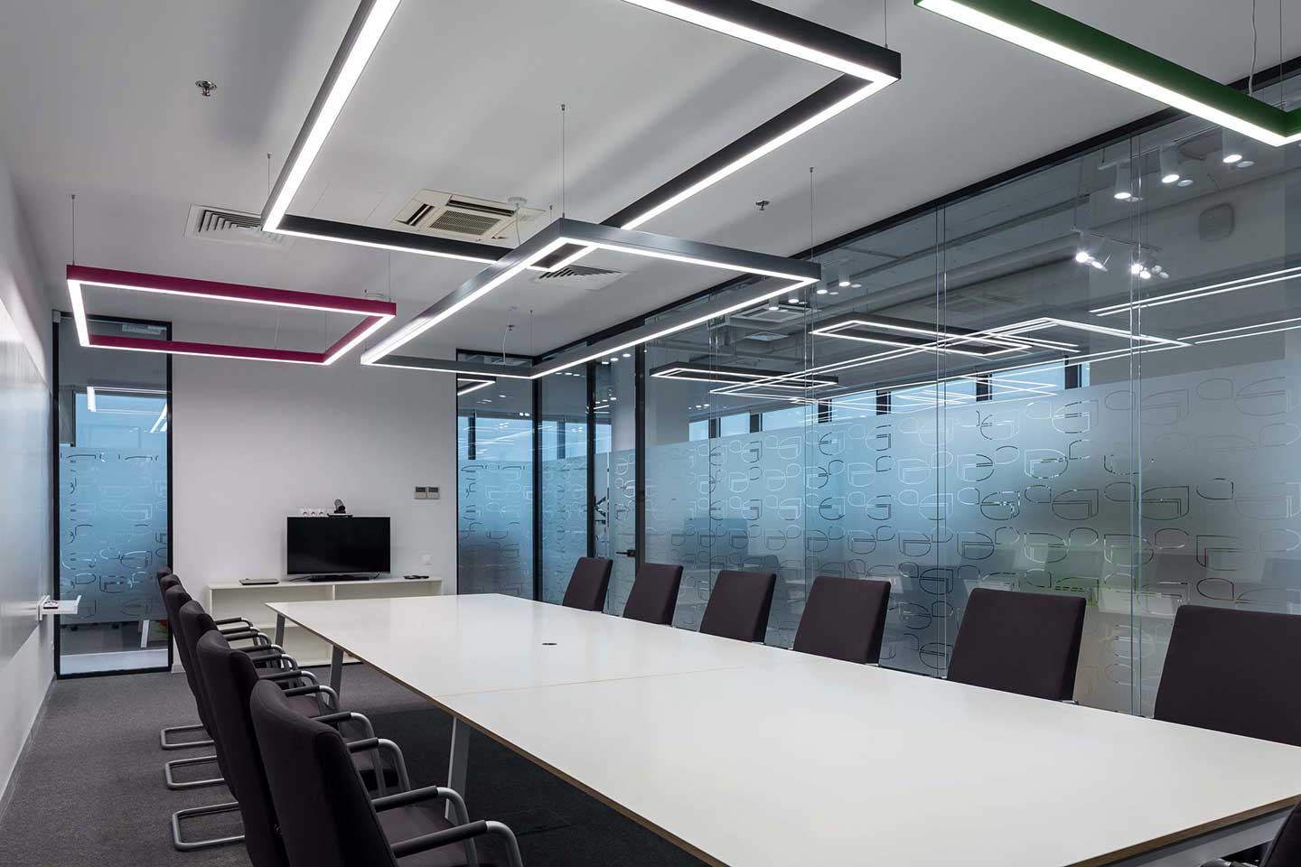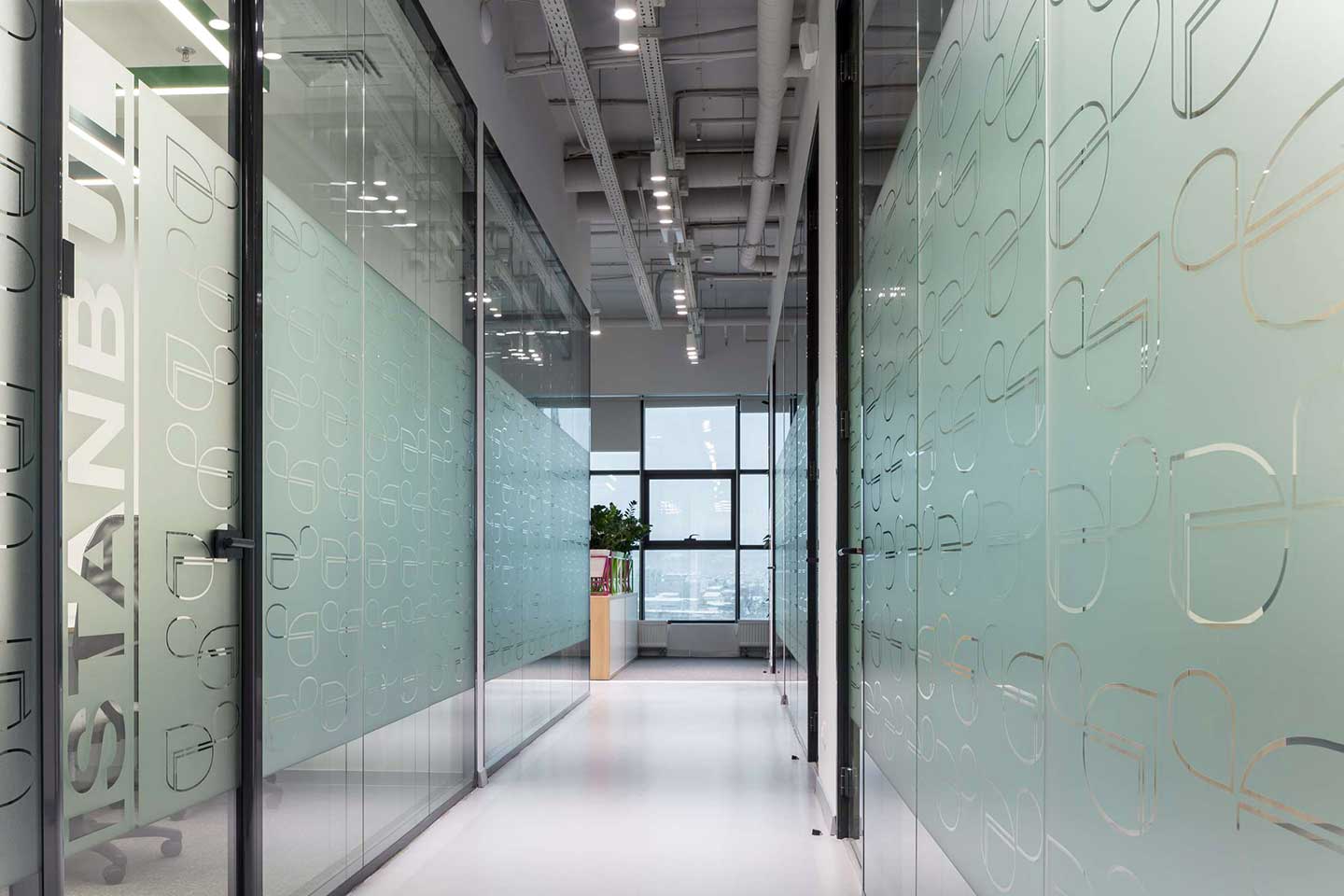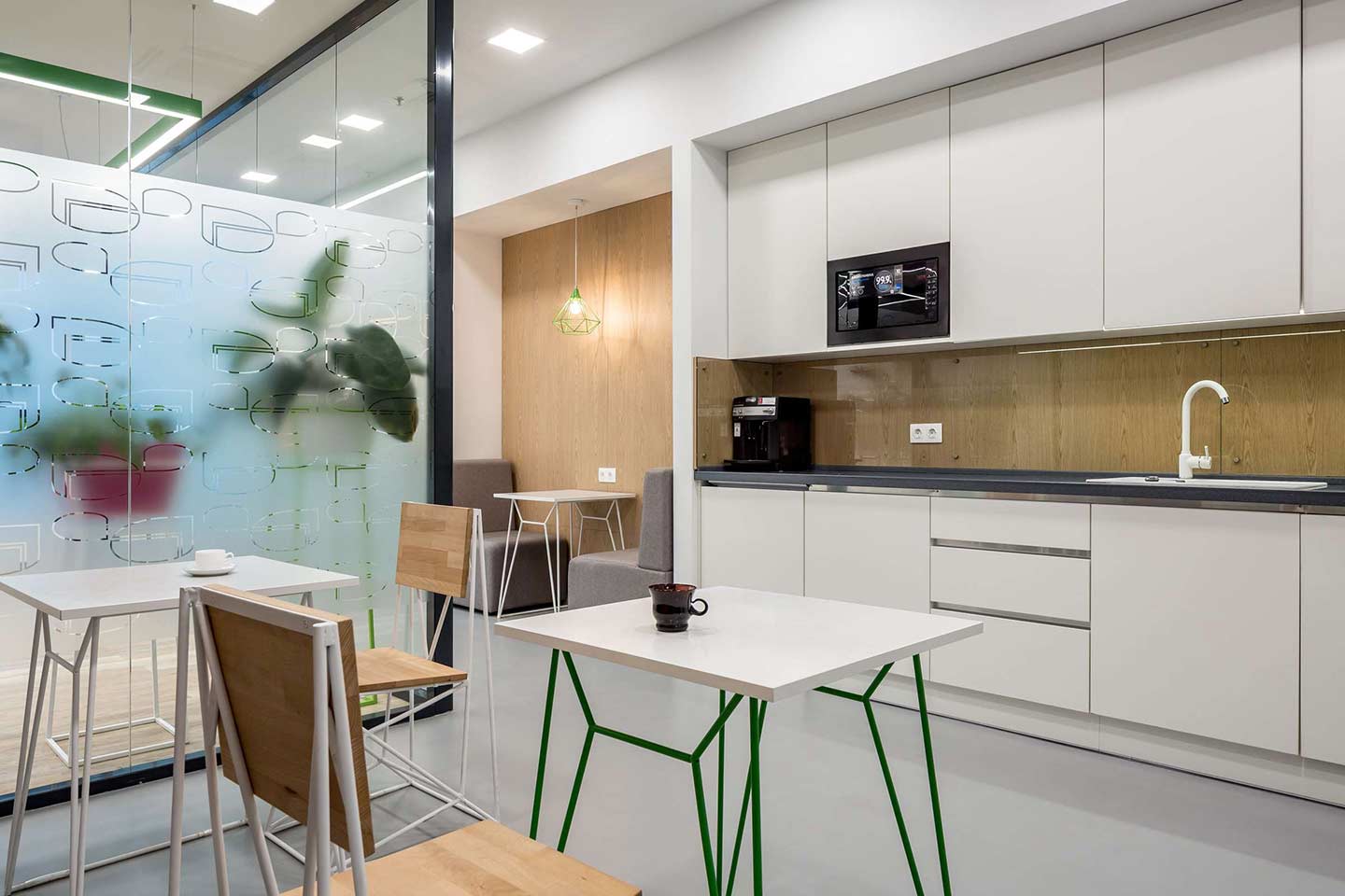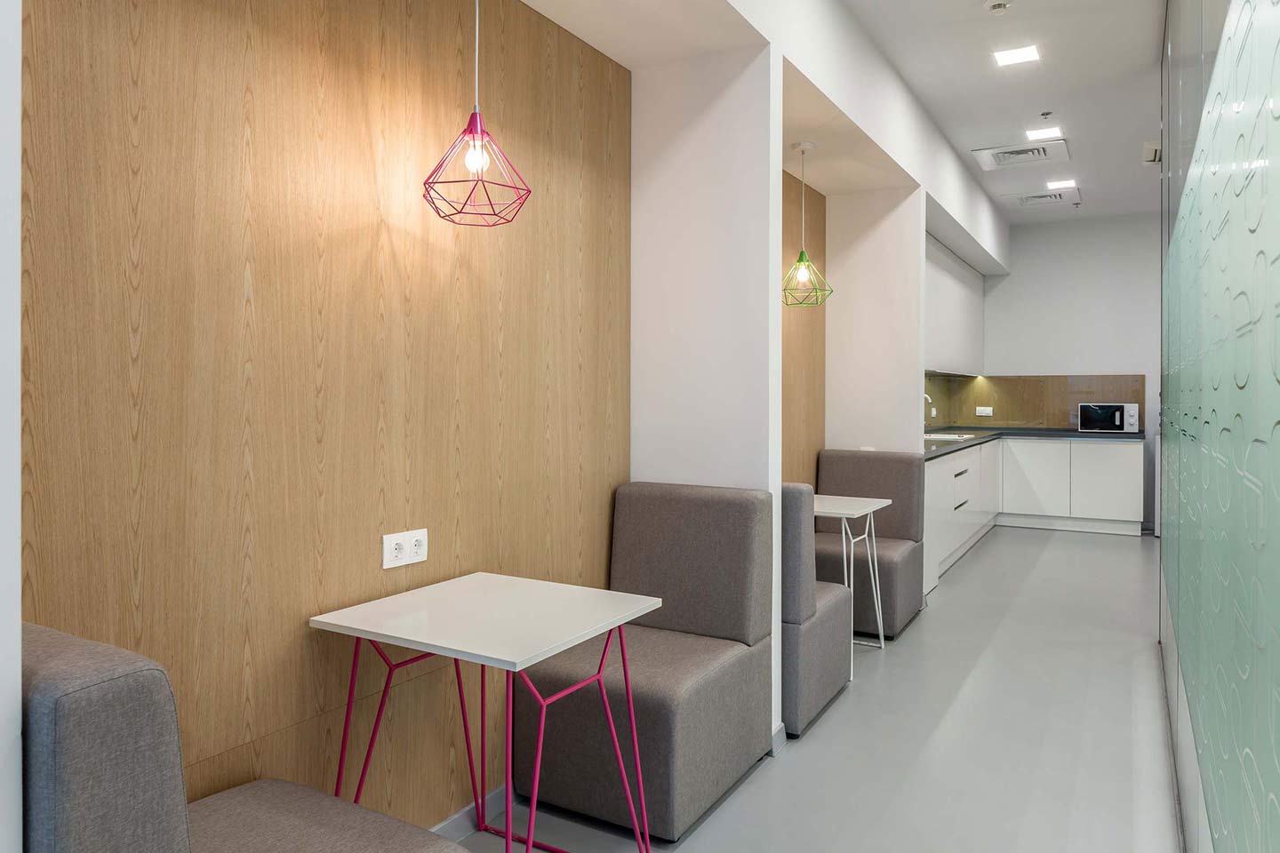 Офіс компанії виконаний відповідно до її фірмового стилю. Ресепшн, окремі кімнати і навіть меблі зроблені так, щоб підкреслити кольори компанії.