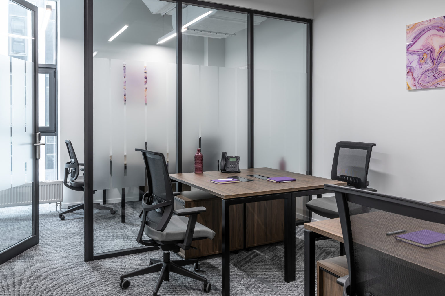 Робочі простори займають третій і четвертий поверх БЦ «Avenue 53» і оснащені всім необхідним для комфортної роботи і проведення зустрічей.